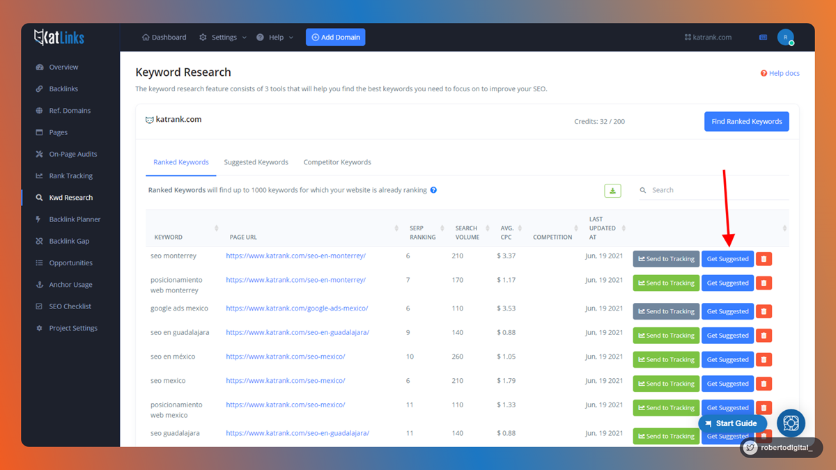 To make it quicker and easier to get suggested keywords, we added the feature to get them directly from ranked keywords and competitor keyword results with one click.