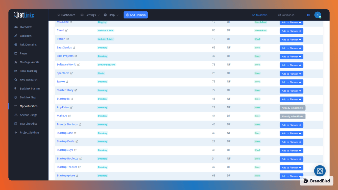 We continue to add more Backlink Opportunities. Now you'll find 13 new websites where you can get more backlinks.